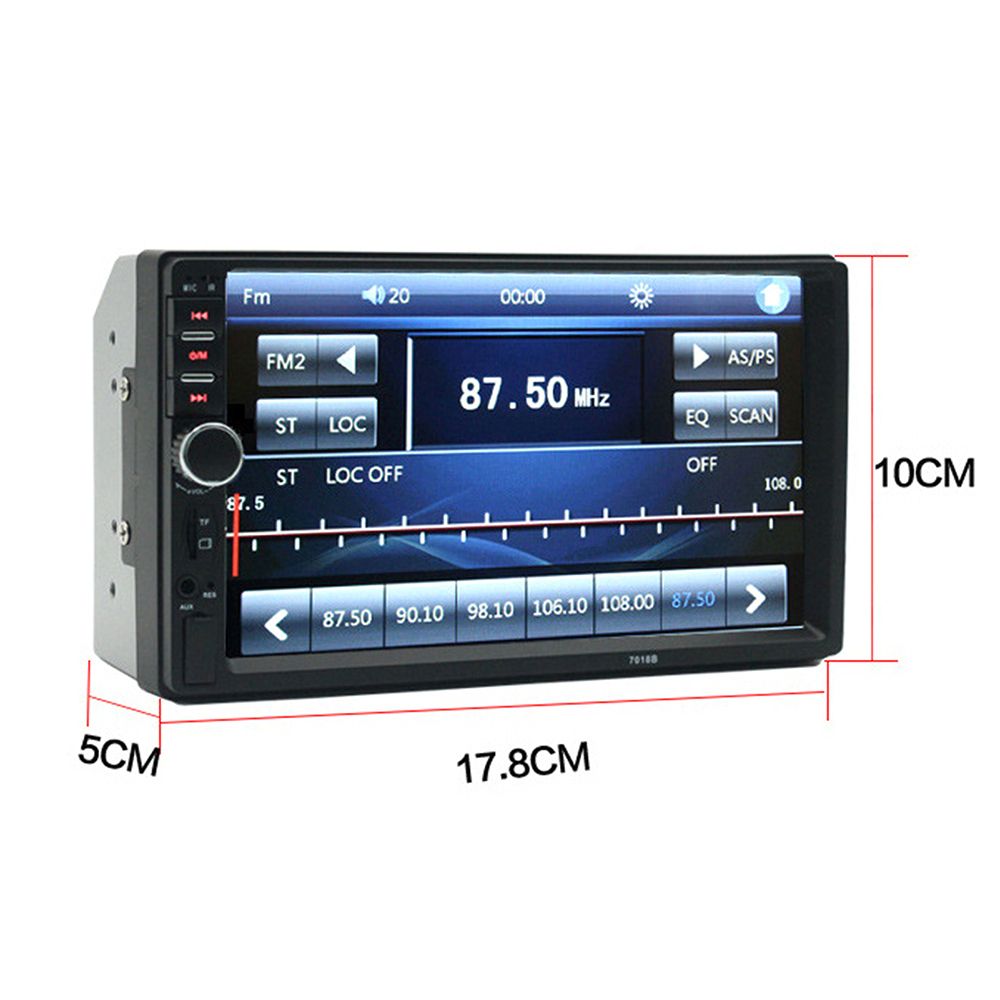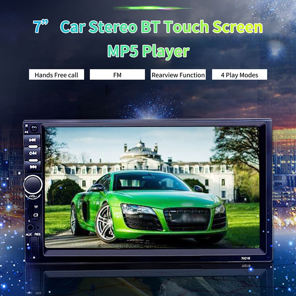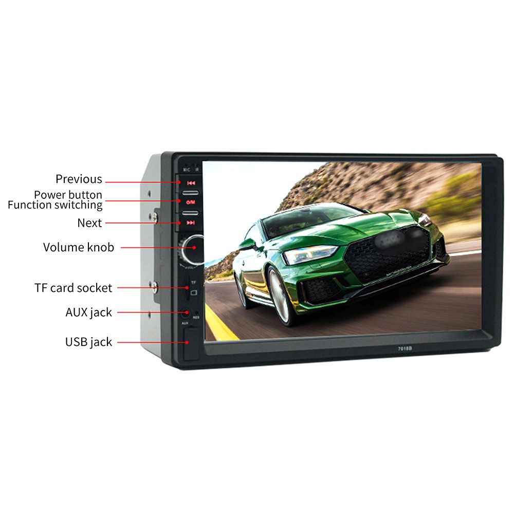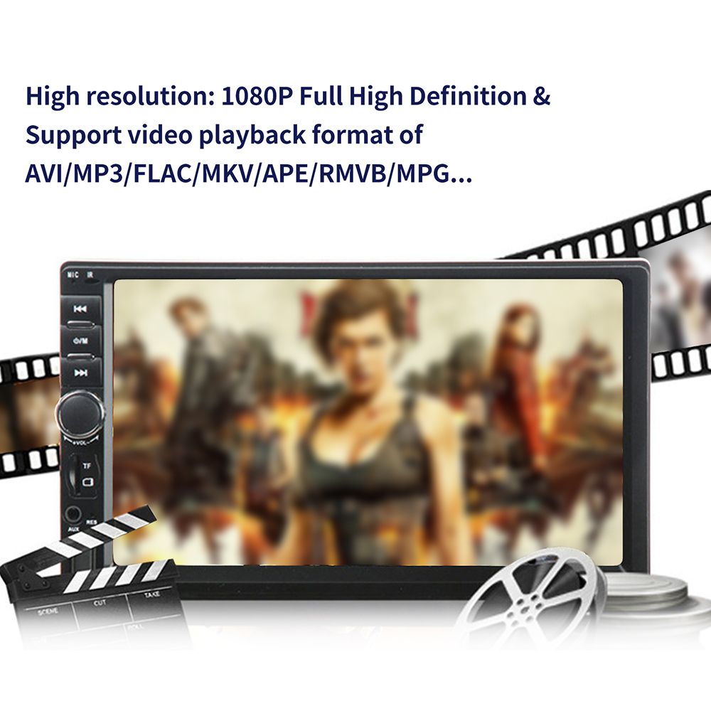 7 inch 2 din 1080P car radio MP5 player supports BT and hands-free calling, USB, TF Card, AUX IN, music player, video player, and other functions.