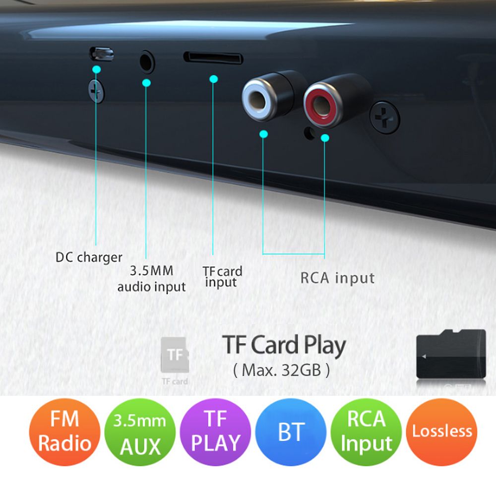 Audio input: BT, TF card, RCA, 3.5mm audio input