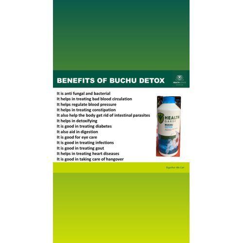 This herbal drink helps to improve the general health of the body by boosting the body's system, thereby protecting against sickness. It is especially useful in detoxification and colon cleansing , assists with normalizing blood sugar and Cleanses the bladder and deals with Urinary Tract Infection. Buchu detox is well known for its inflammatory properties which makes it beneficial for Gout. It is scientifically formulated to enhance and mobilise the body's natural defense against external bodies while fighting those ones found there.