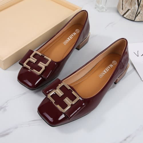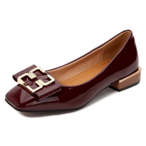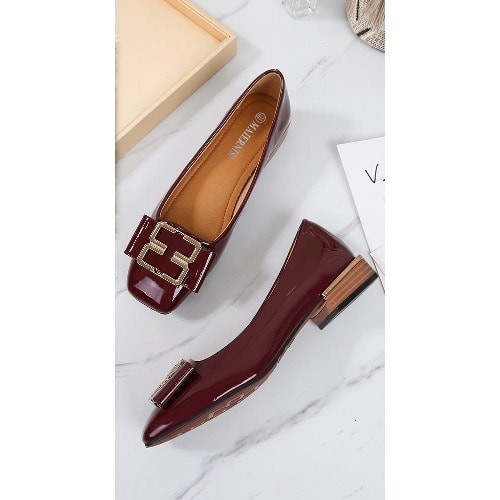 The shoe has a top accessories designed with a conination of patent leather and Pearl