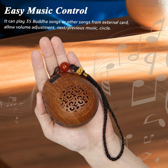 EASILY CONTROL MUSIC - It supports: 35 Buddha songs, play next/previous song, repeat single song, adjust volume level.