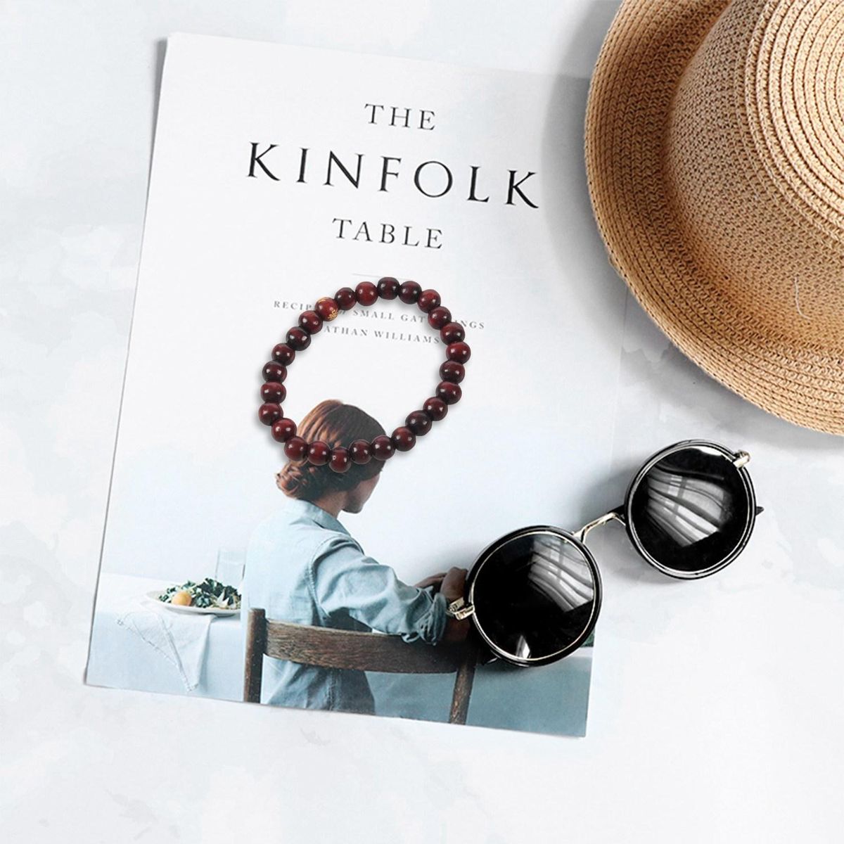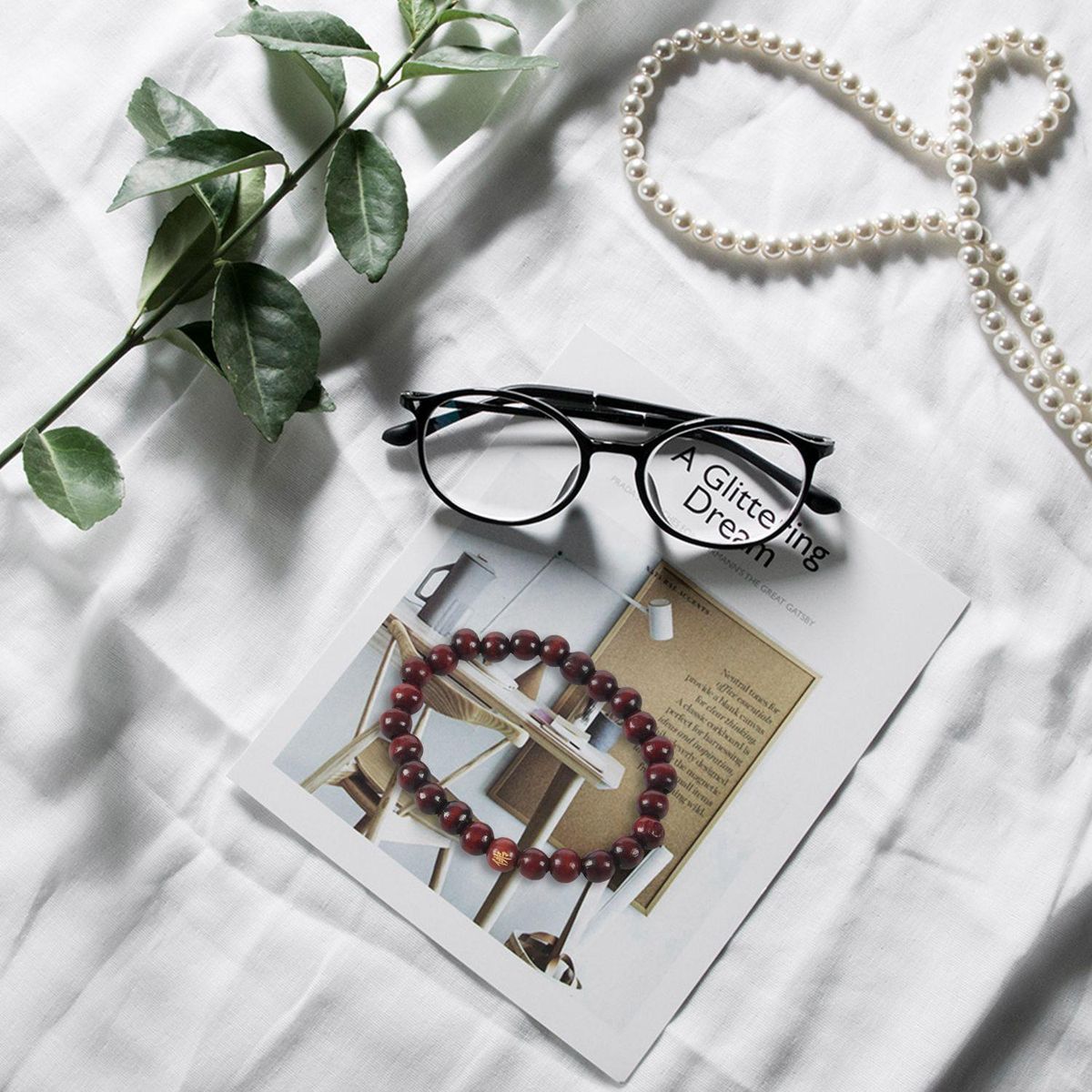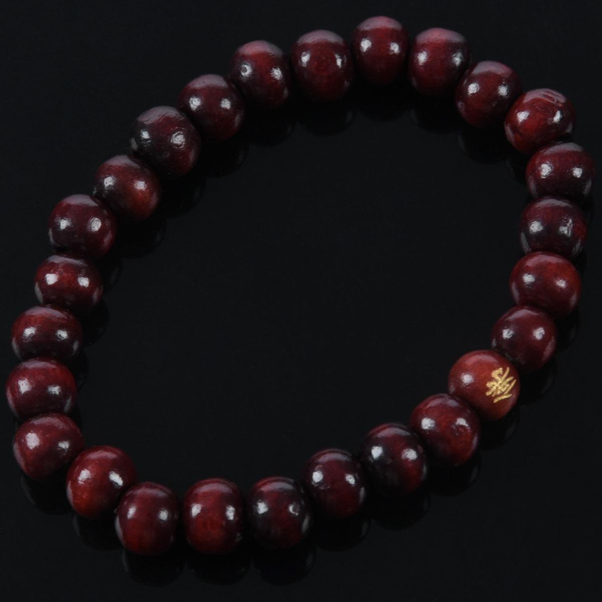 Description: Made of wood material, with the round beads and elastic string fixed.