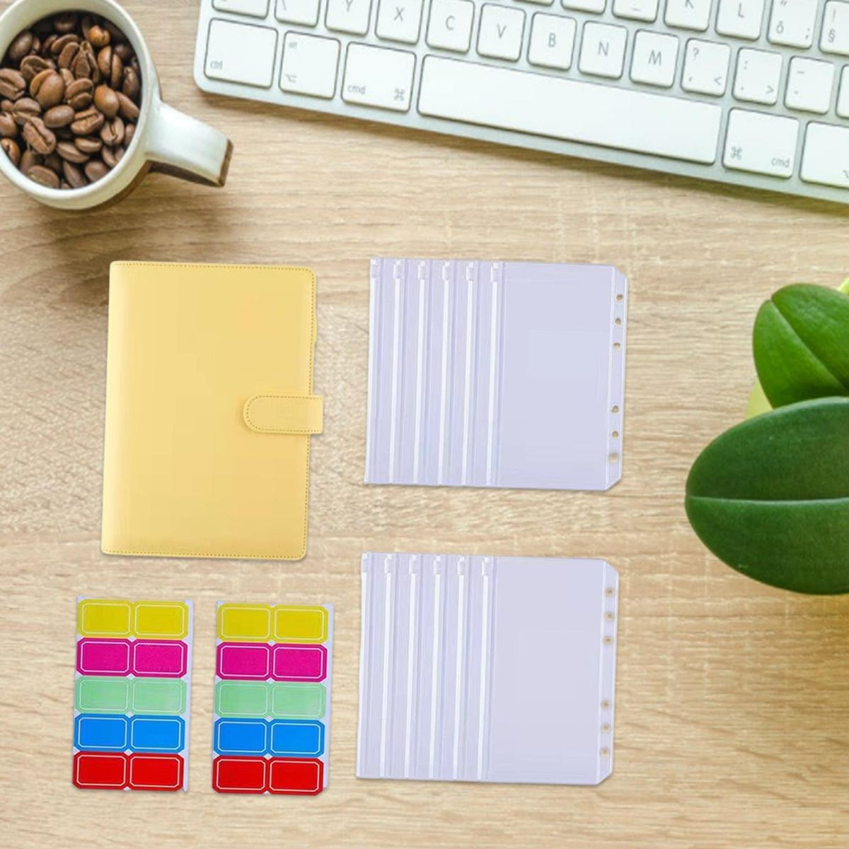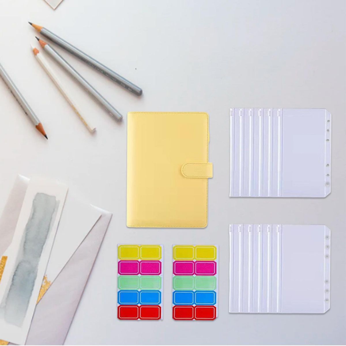 PU Leather A6 Notebook binder: This blinder notebook gives you rings binder functionality in a smart professional notebook.12 Binder Envelopes: Made from translucent PVC material with clear view for quick and easy identification, can be used in combination or applied separately.Expense Budget Sheets: 5 Colors of budget sheets are provided for you. Can be inserted into the binder easily, will work well with PU binder.Each binder pocket is designed with 6 pre-punched holes, you can use the notebook arrange these binder envelopes together or just take one on the go.Perfect for storing bills, invoice, cash, coupons, cards, stamps and more.