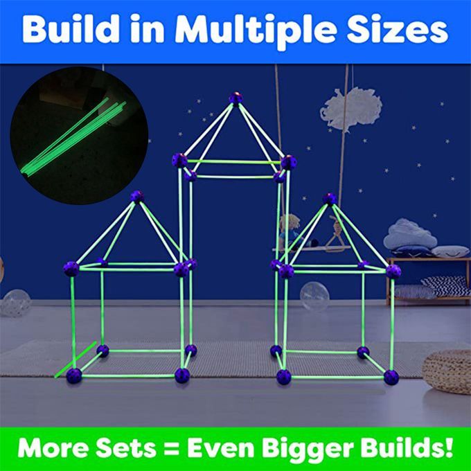 BUILD YOUR OWN FORT - Create giant kids forts by inserting and twisting the rods into the spheres (adult supervision is advised); Children can play indoor and outdoor. Glow in the dark feature needs to be exposed to light prior to activating in the dark.