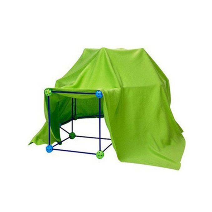 GLOW IN THE DARK FORT BUILDING KIT - Build endless play tent structures, forts, play tunnels and more with this construction fort set that includes 51 glow in the dark connecting rods, 36 multilink spheres and 1 piece of tent cloth.