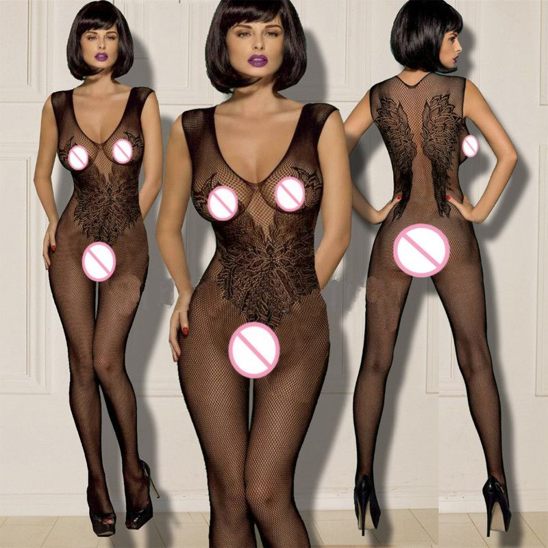 1X Black Sexy ladies lingerie, crochet net perforate Heat Lingerie Fishnet Catsuit Underwear Bodystockings dress shirts solid D632