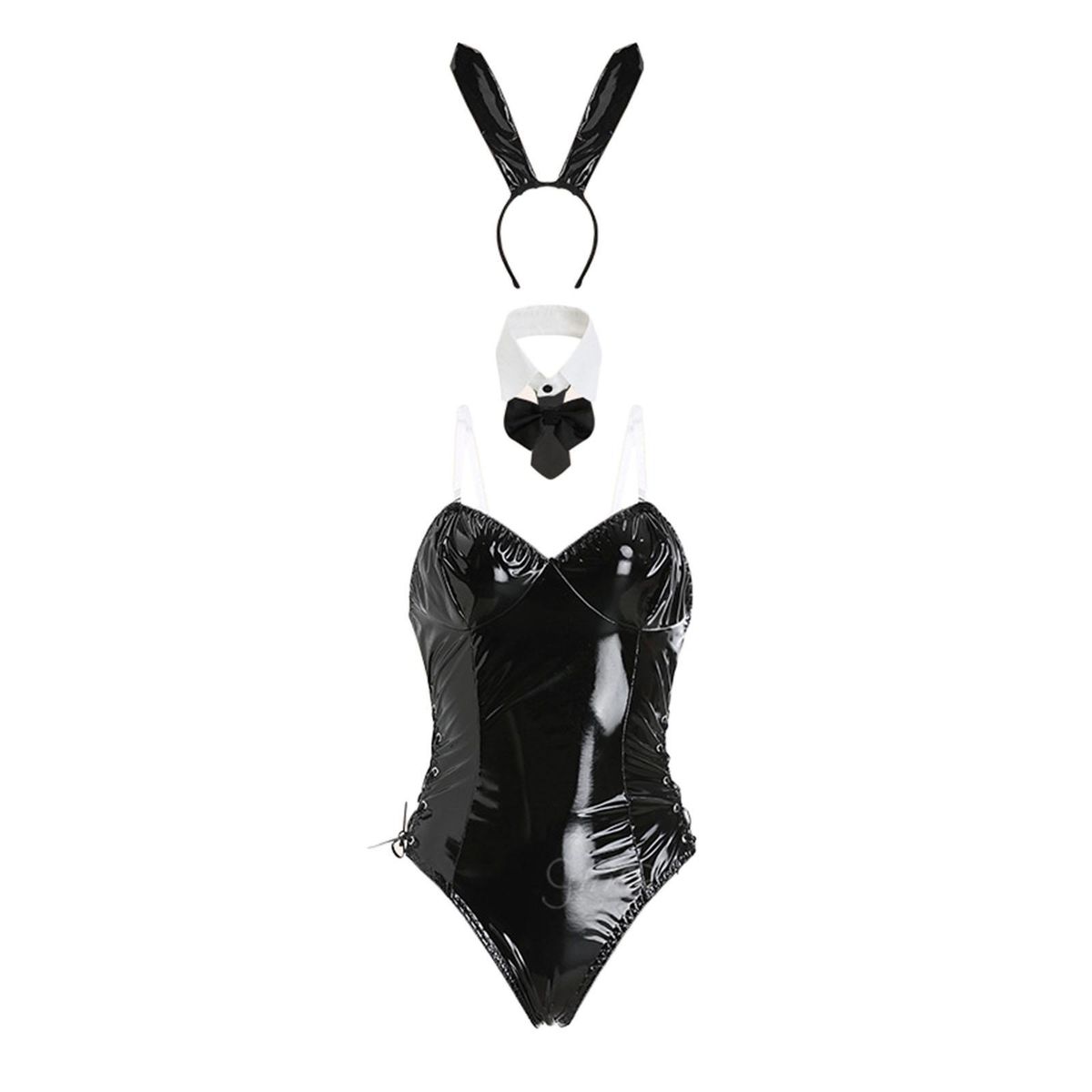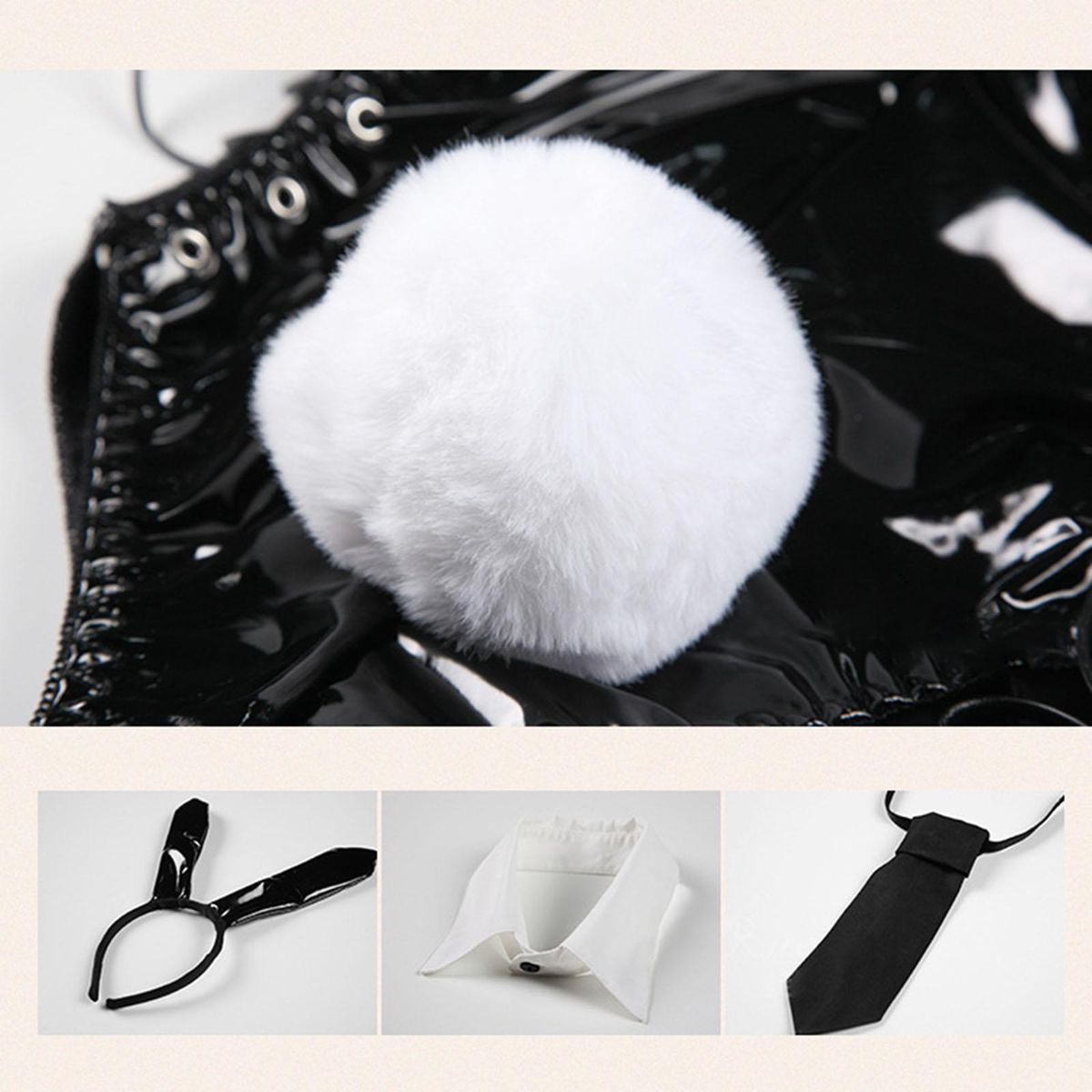 Package includes: This women's bunny girl cosplay set includes 1 piece bunny ears, 1 piece fake collar, 1 piece bow tie, 1 piece necktie, 1 piece bodysuit and 1 piece hairball.