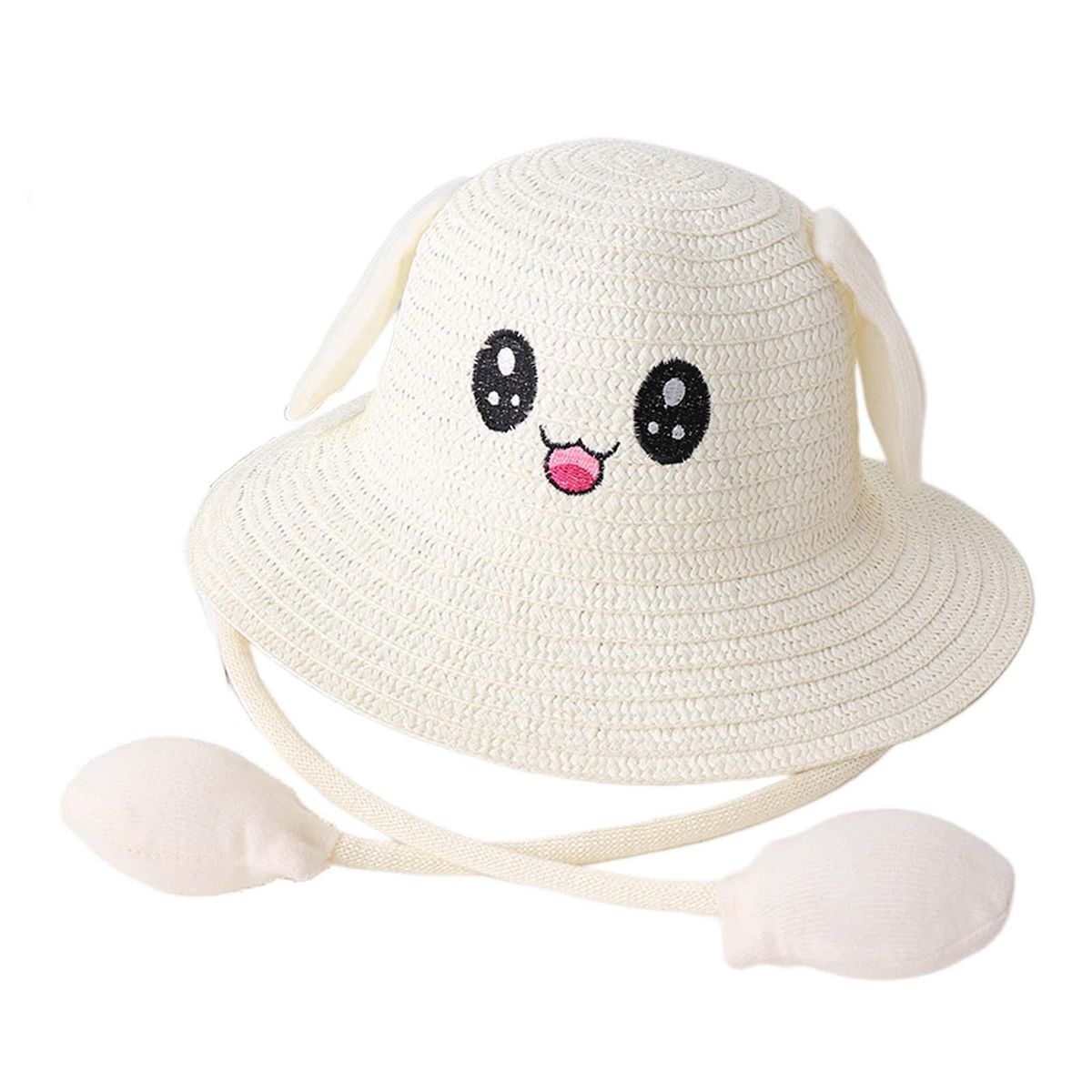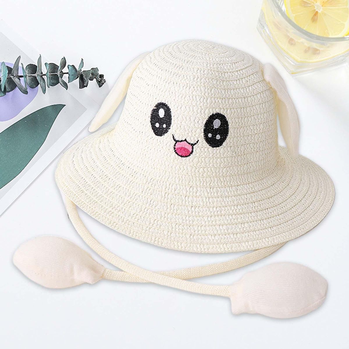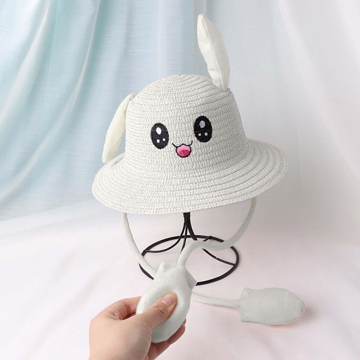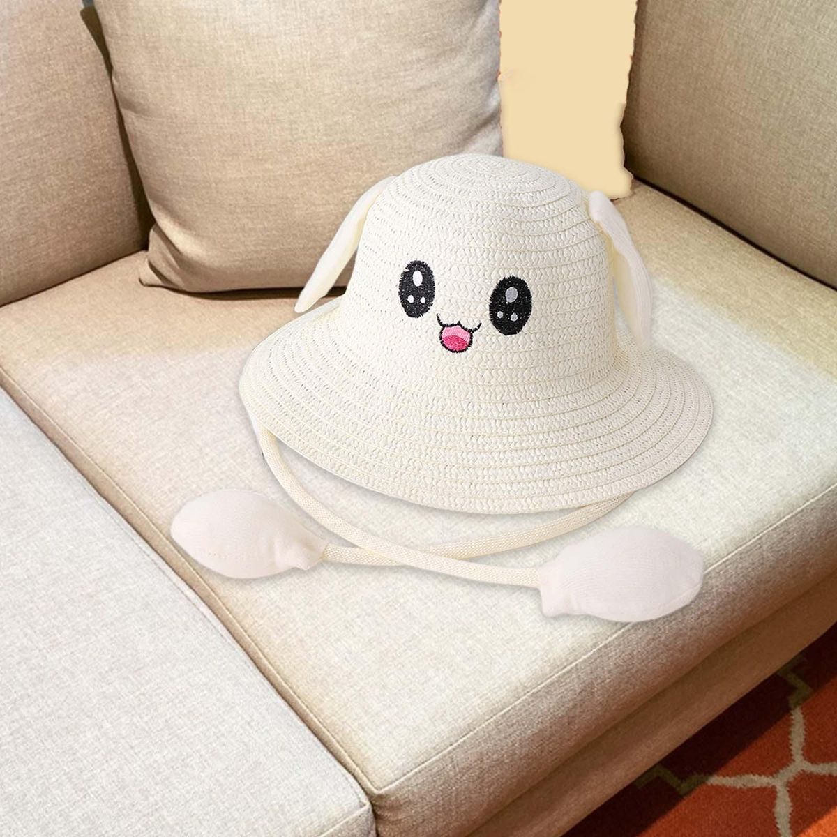 【Novelty Design】Rabbit Ear Sunshade Kids straw hat with wide brim, the straw hat is fashionable, causal, and trendy, perfect for boys and girld in summer. Cute Children Hat with Movable Ears, the cute air bag will move its ears when it is pinched.