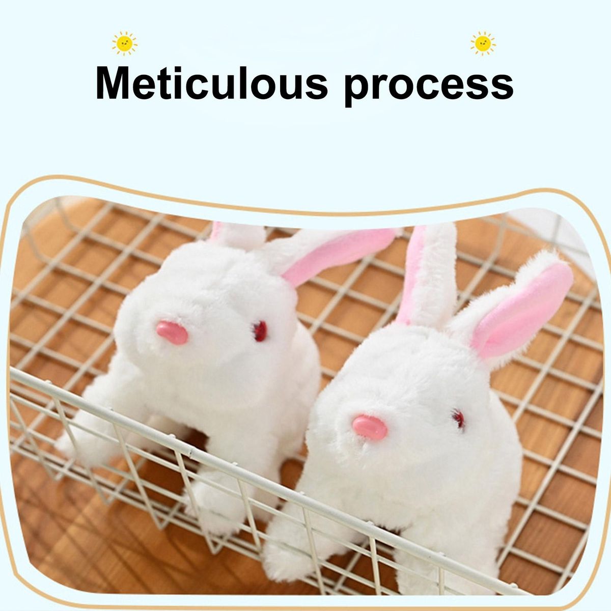 Our electric bunny toy, the perfect gift for kids who have a deep love for animals! this adorable bunny is designed to bring endless joy and entertainment. with its long ears that swing back-and-forth, twitching nose, and jumping abilities, it truly mimics the movements of a real rabbit. but that's not all this interactive toy even murmurs when you touch its nose! .
