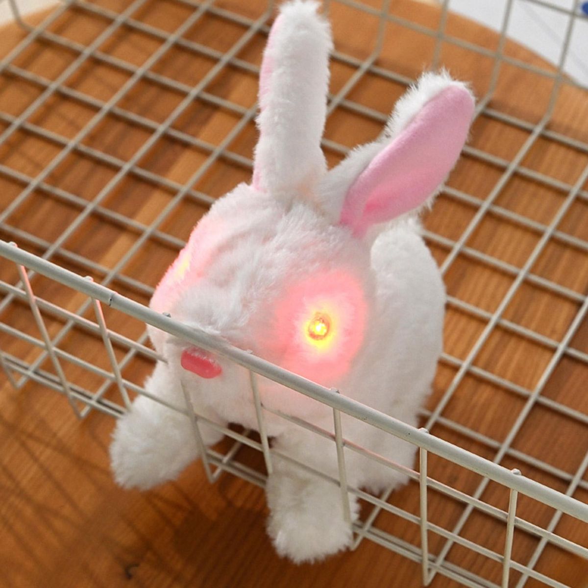 To capture children's attention, the bunny's eyes light up, adding an extra element of excitement. your little ones will be captivated by this lively rabbit as it jumps forward and emits a sweet noise. it's like having a real pet without the responsibility.