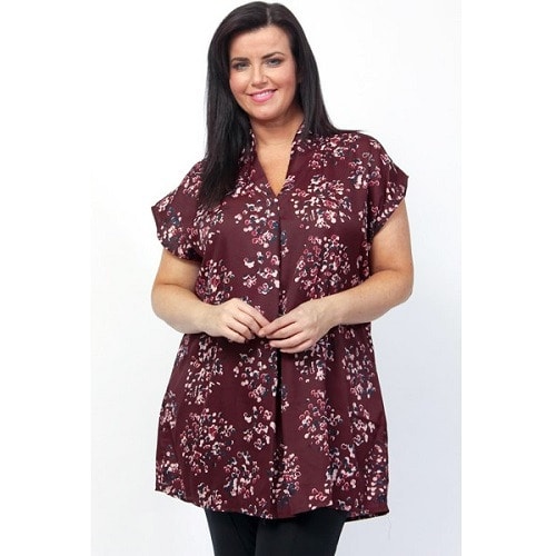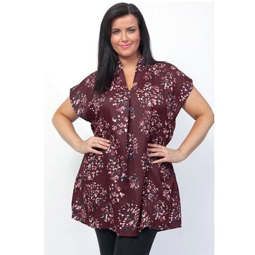 Buy Burgundy Cluster Print Funnel V-Neck Tunic Kaftan Top in Nigeria