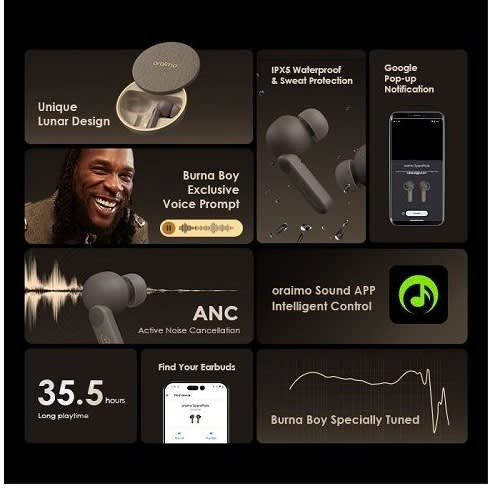 - Burna Boy Voice Prompt - Unique Lunar Design - Active Noise Cancellation - oraimo Sound APP