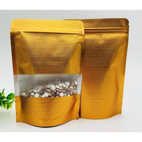 Buy Burnt Gold Zip Lock Pouches With Silver Foil Lining & Frosted Window - 50 Pcs - 18cm×26cm in Nigeria