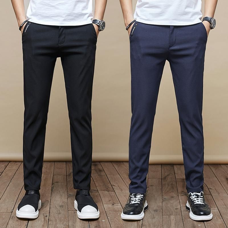 Pantalones elasticos de negocios para hombre, ropa informal de algodon, color negro, Pentalon, Primavera, 2020