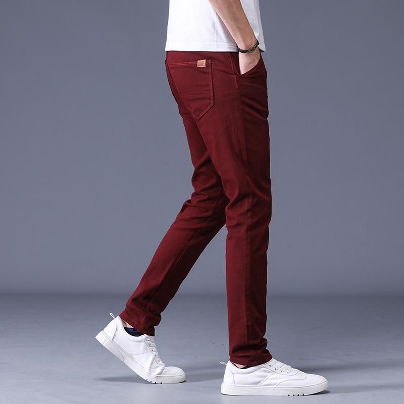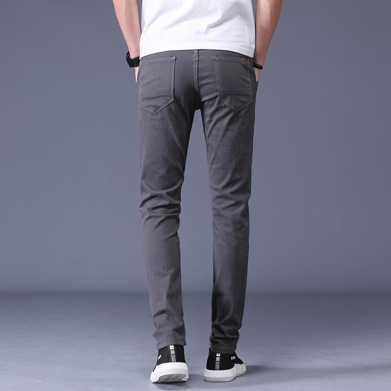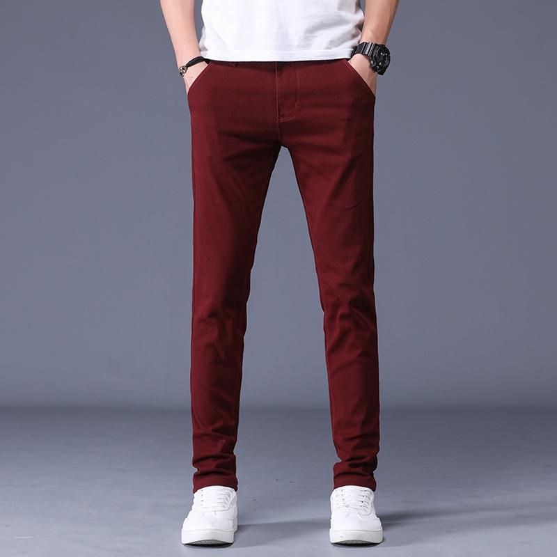 Pantalones informales de negocios para hombre pantalones ajustados de cintura elastica de marca longitud completa 98% algodon 6 colores novedad de 2020
