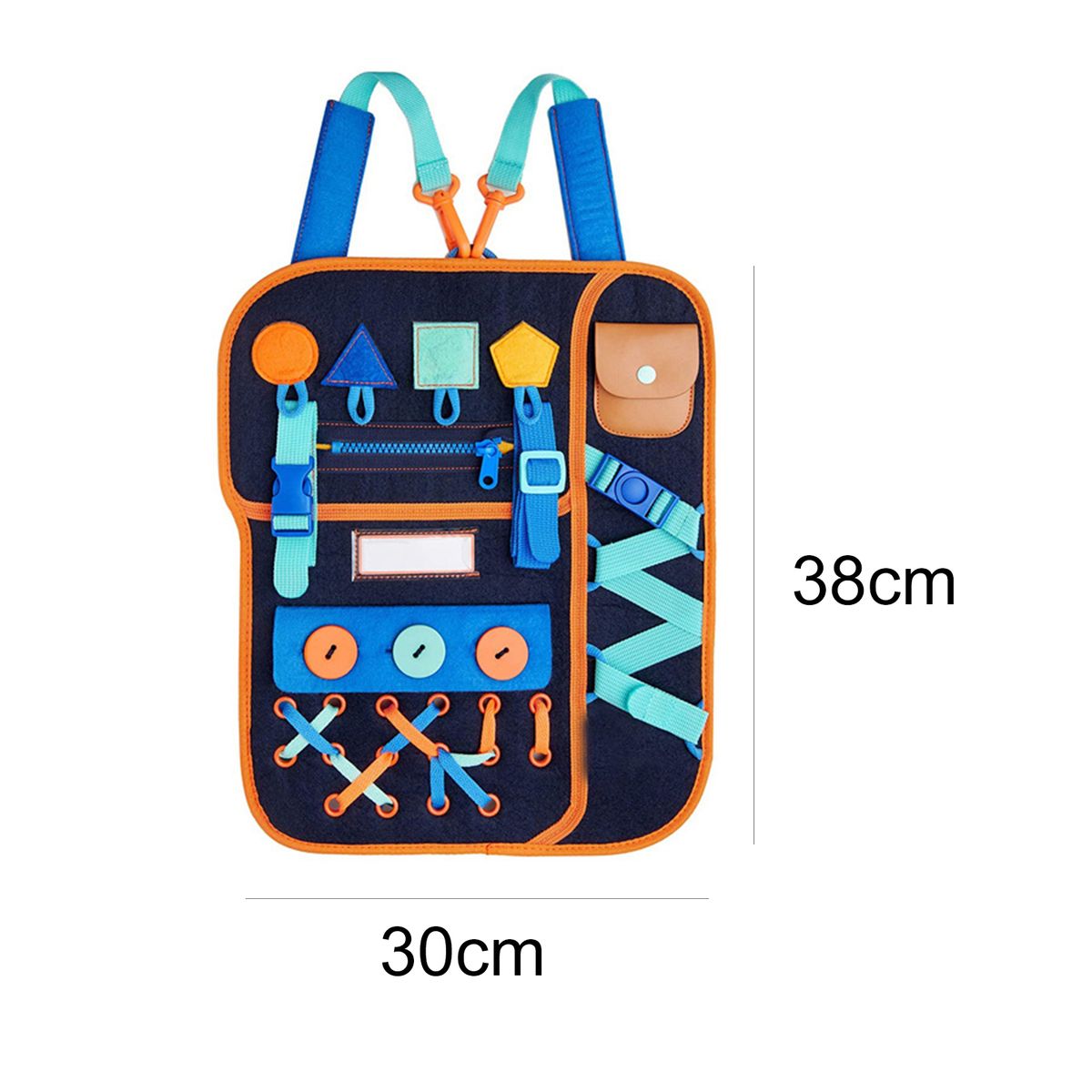 The length of the busy board is 38cm and the width is 30cm.