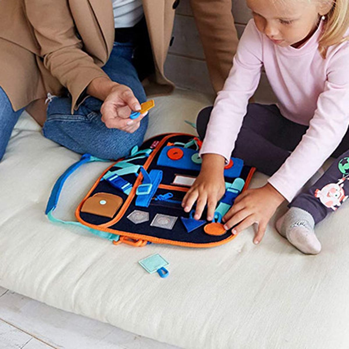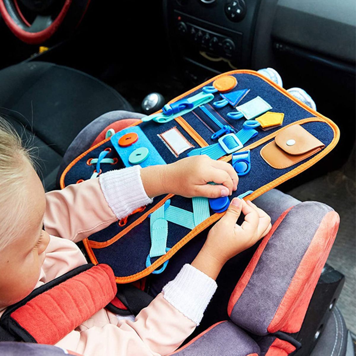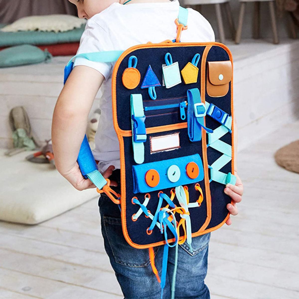The busy board is made of premium felt.