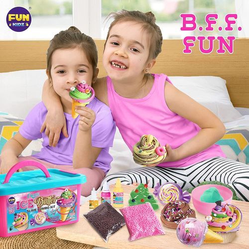 FunKidz slime kit includes enough slime supplies to create any slime you can image as cake slime, donut slime, candy slime, ice slime,etc. Put the ready slime in ice cone or candy storage could make them looks real. Create kids dreamy slime by imagination and share with friends. It helps improve kid hands on skills and experience fun baking. Slime making has been proven to aid a child's development and greatly enhance creativity. It is the perfect combination of fun and learning.