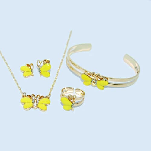 Set includes a pair of earrings, a necklace, bangle and ring.Suitable for dress up on occasions and for gifting to girls.More designs for girls to be added soon.