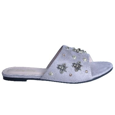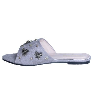 Buy Butterfly Metal Studded Flat Slippers - Grey in Nigeria