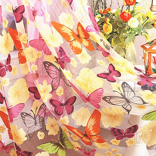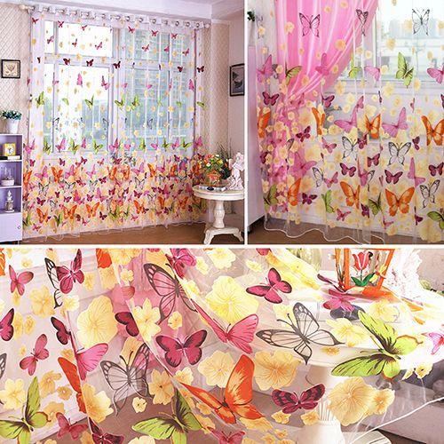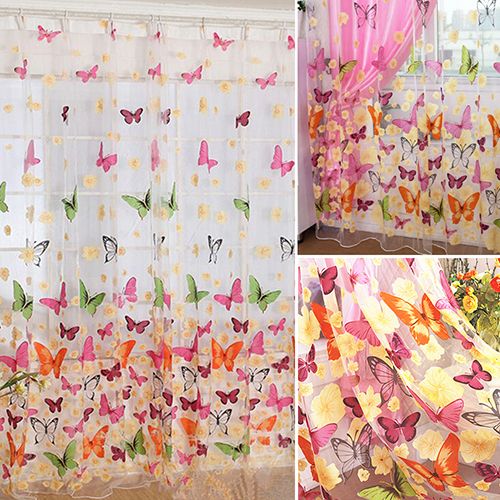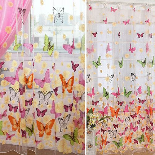 Butterfly tulle door window screening curtain sheer drape panel scarf valances.