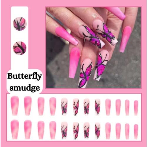 Buy Butterfly Smudge Press on Nails - 24 Pcs in Nigeria