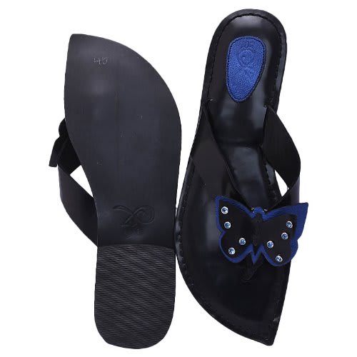 Buy Butterfly Thong Style Leather Flat Slippers - Blue in Nigeria