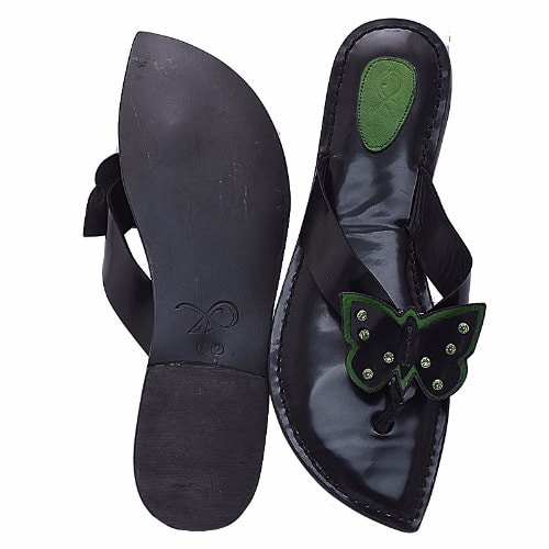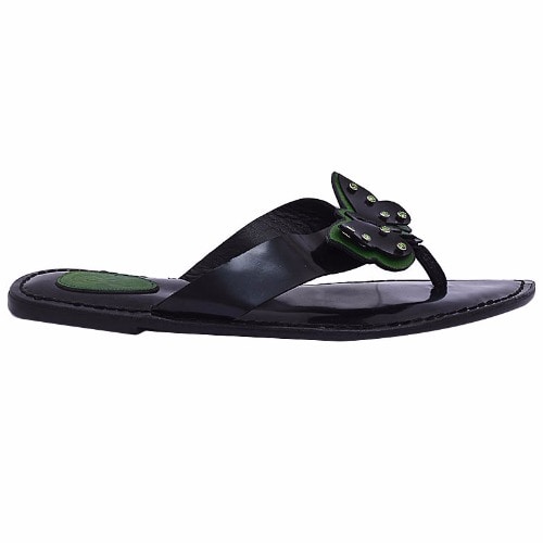 Buy Butterfly Thong Style Leather Flat Slippers - Green in Nigeria