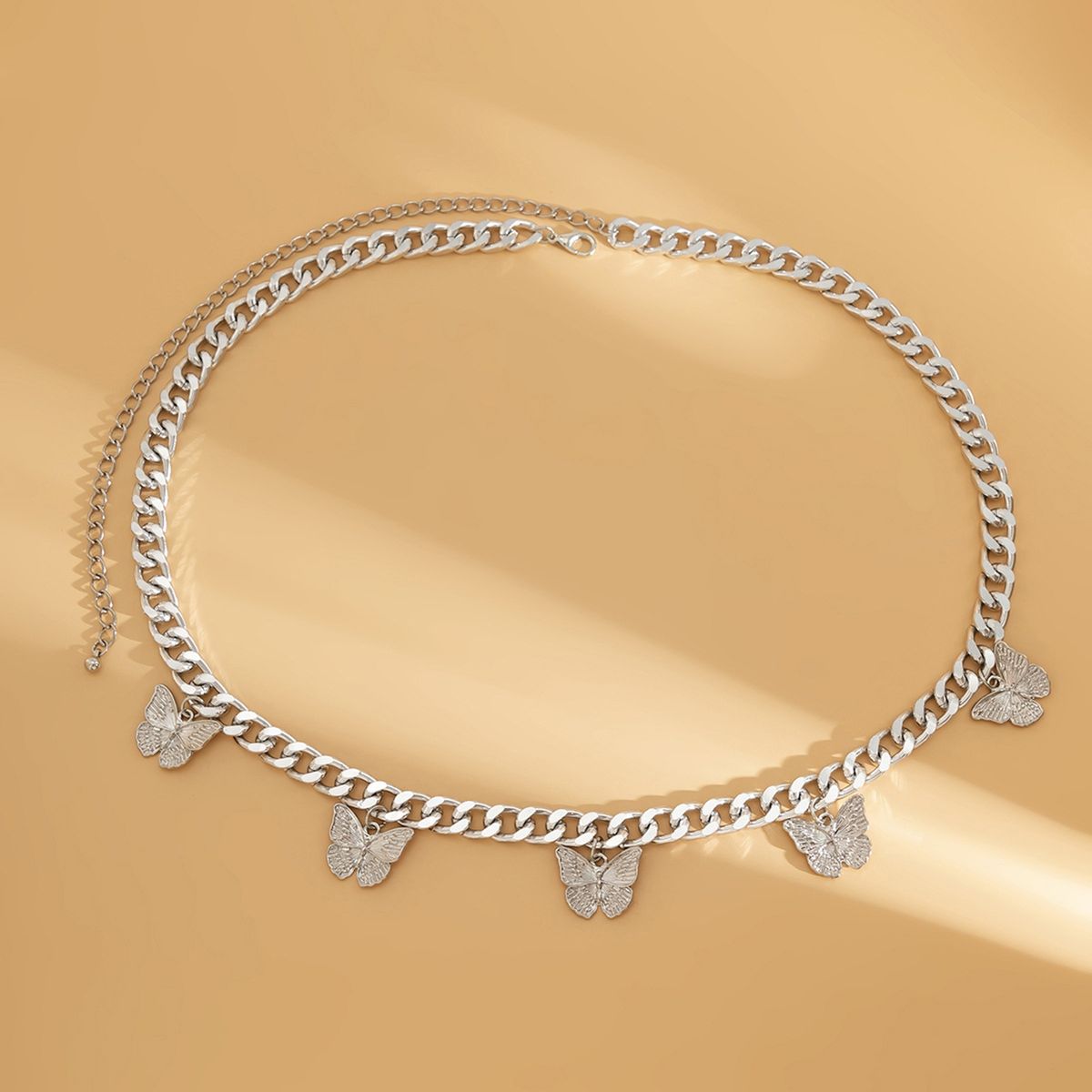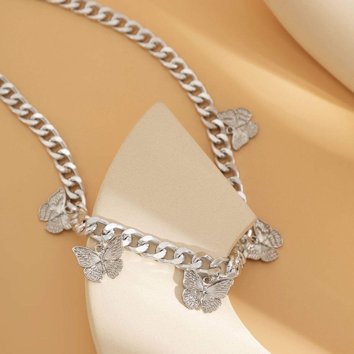 It is lightweight and wear resistant because it is made of alloy material. What adds a sense of decoration and chic is the butterflies pendant design.