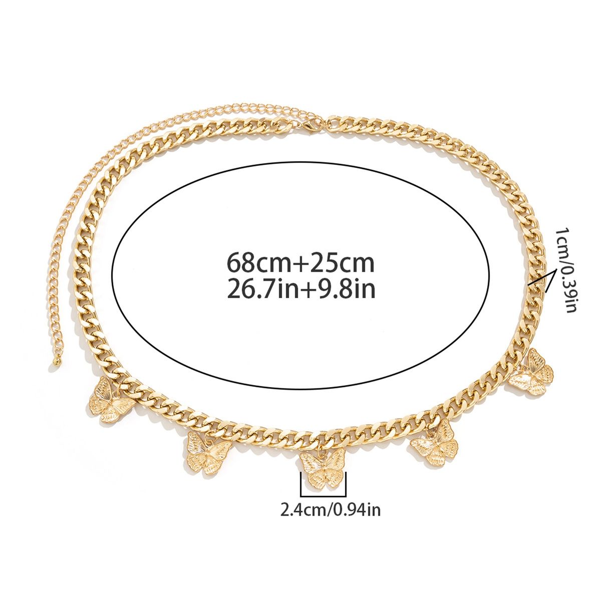 The length of waist chain is 68cm, the extend chain length is 25cm.
