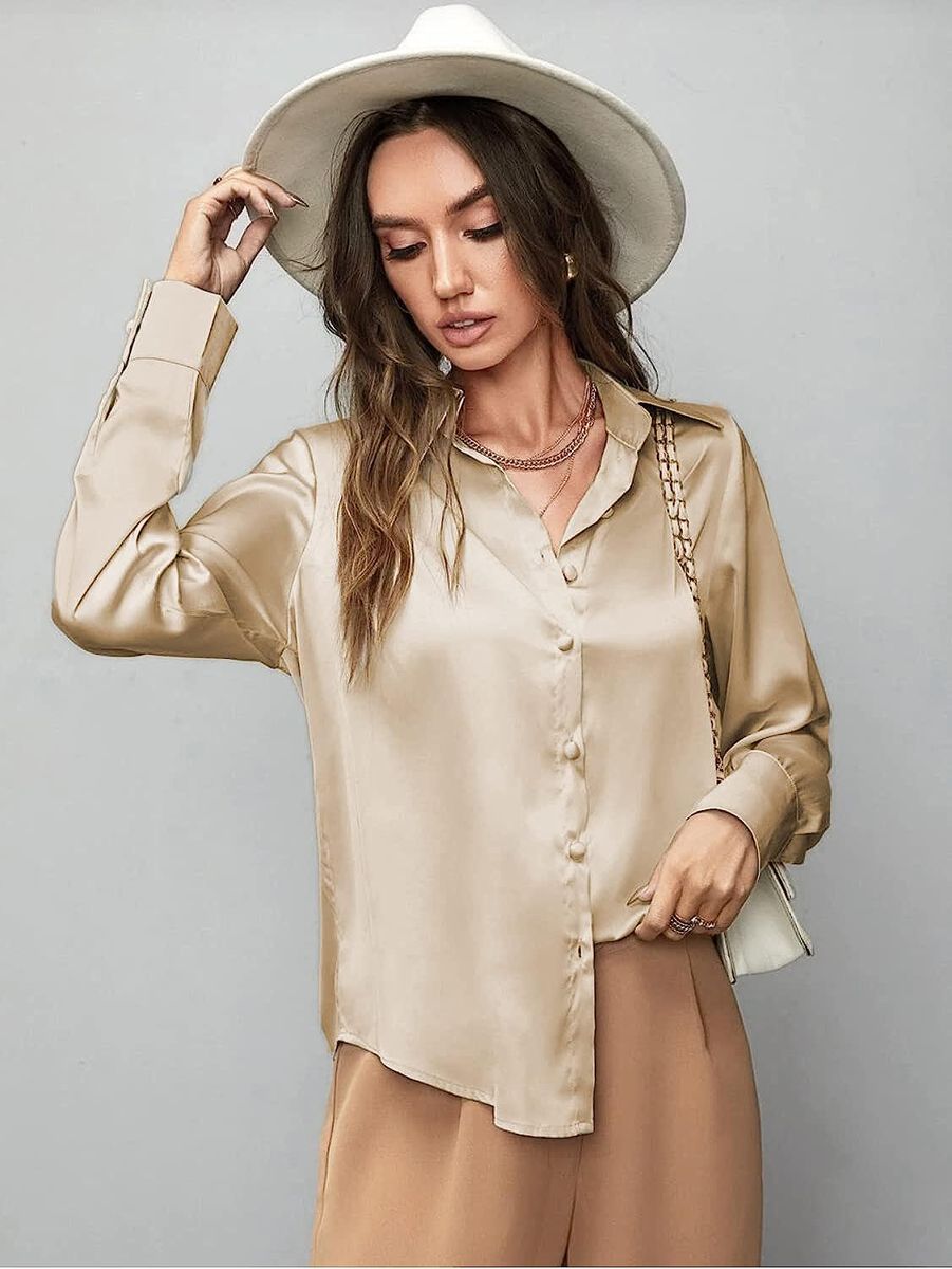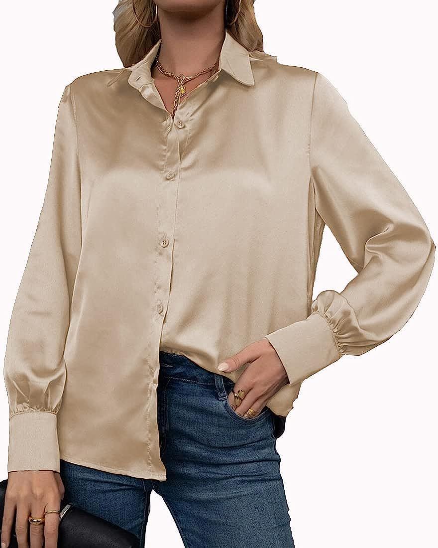 - Material: This satin silk pink blouses is made of breathable and lightweight silk fabric, give you a comfortable feminine touch and cooling feel, skin-friendly, soft and comfy to wear