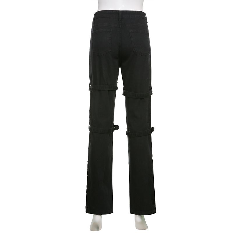 1X WeiYao Eyelet Buckle Black Punk Goth Jean Fashion Woman Techwear Dark Academic Print E Girl Cargo Pants Low Waist Denim Trousers
