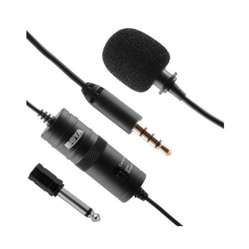 BOYA BY-M1 is an omnidirectional lavaliere microphone, perfect for video use, designed for Smartphones, DSLR, Camcorders, Audio recorders, PC etc. The lavaliere microphone features an Omni pickup pattern, for full, 360-degree coverage. An integrated 6-meter (20) cable with 3.5mm 4-pole gold plug, can connect directly to Smartphones, most of cameras. For Smartphone: Switch off the microphone. Slide the ON/OFF up to OFF/Smartphone. The power is shut down. For DSLR, Camcorders, Audio recorders, PC etc.: Switch on the microphone. Slide the ON/OFF up to ON. Features: Clip-On Mic for Smartphones, DSLR, Camcorders, Audio recorders, PC etc. Omni directional condenser microphone High-quality condenser is ideal for video use Low handling noise Specifications: Transducer: Electret Condenser Polar pattern: Omni-directional Frequency Range: 65Hz ~ 18KHzSignal/Noise: 74dB SPL Sensitivity: -30dB +/- 3dB / 0dB=1V/Pa, 1kHzOutput Impedance: 1000 Ohm or less Connector: 3.5mm (1/8) 4-pole gold plug Battery Type: LR44Dimensions: Microphone: 18mmH x 8.3mmW x 8.3mmDCable: 6mWeight: Microphone: 2.5gPower Module: 18gPackage Includes:1 x Microphone1 x Lapel Clip1 x LR44 Button Battery1 x Foam Windscreen1 x 1/4 Adapter