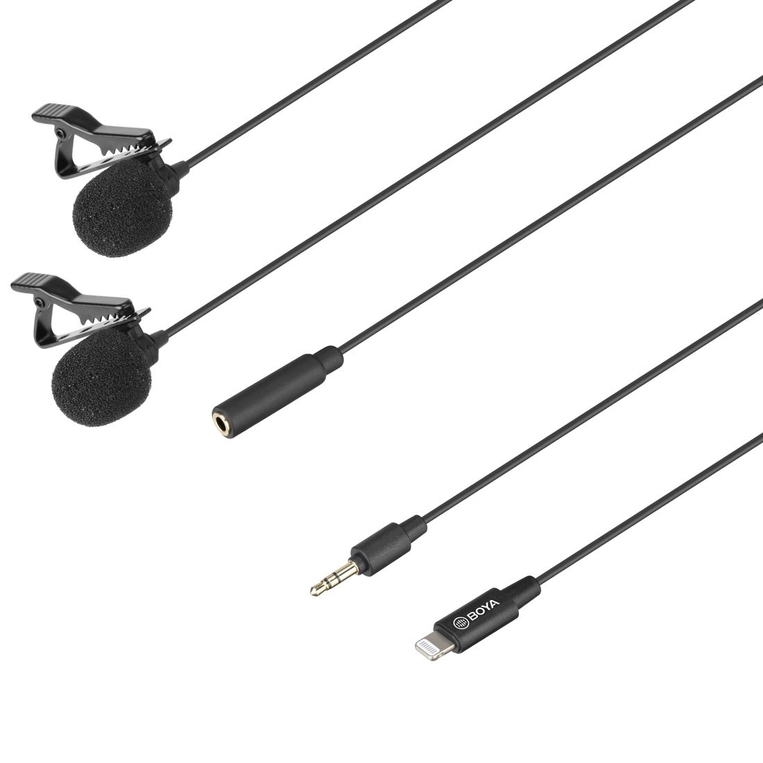 BOYA BY-M2D 8 Pin Interface Omnidirectional Lavalier Bimitral Head Digital Microphone, Length: 6m (Black)
