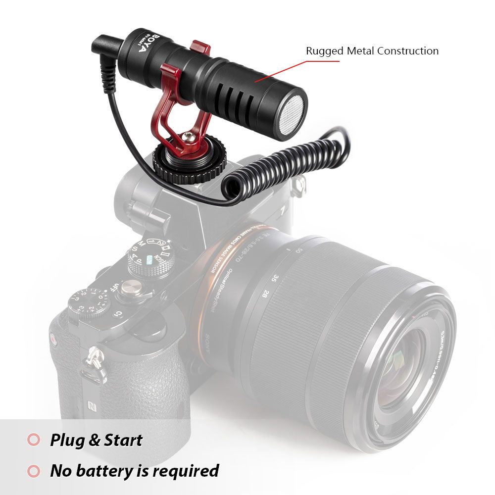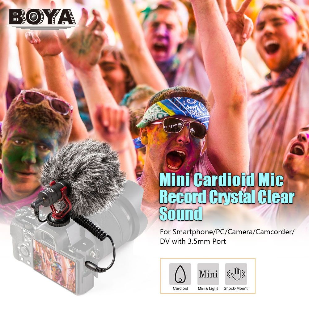 The BOYA BY-MM1 is a cardioid microphone specially designed to improve the sound quality of videos on the basis of build-in microphones. It can be used on smartphones, cameras, camcorders, audio recorders, PCs, and other recording devices with 3.5mm connector.