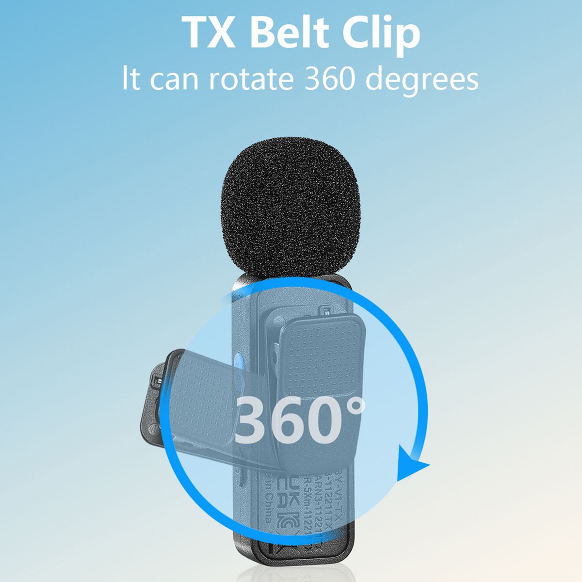 Mini Clip-on Microphone Classic mini style design, the microphone transmitter has a 360° rotatable backside clip, which allow you to fix the microphone to your collar conveniently.