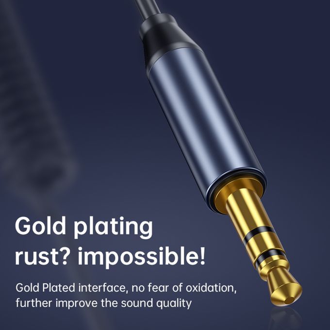 The spring audio cable is approximately 45 cm long and can extend up to about 1 meter. Flexible to use, easy to store and carry.