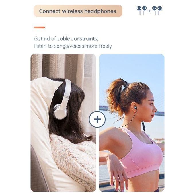 Two sets of earphones connected, support one for two functions, two wireless headsets or speakers are connected at the same time.