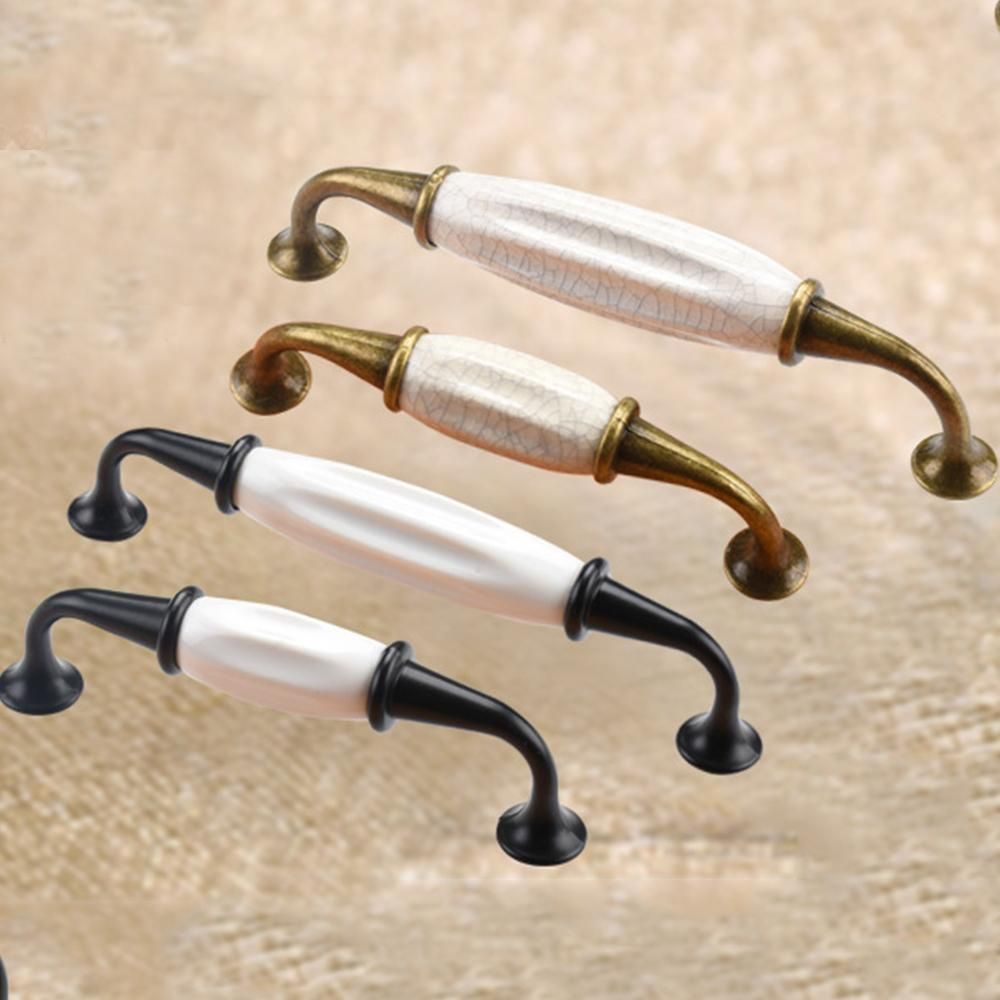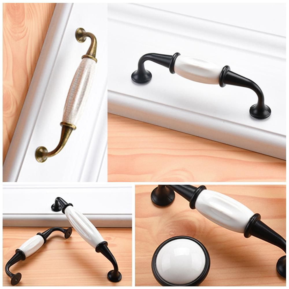 Buy Cabinet ceramic black and white handle European aluminum wardrobe door handle drawer modern minimalist handle furniture hardware Aluminum alloy-128 green in Nigeria