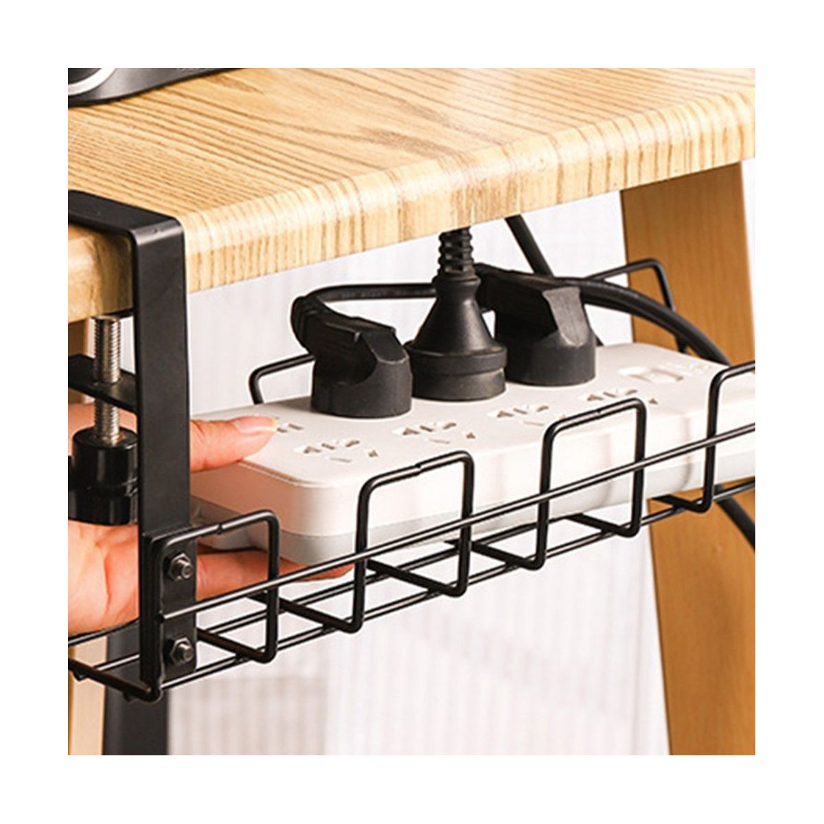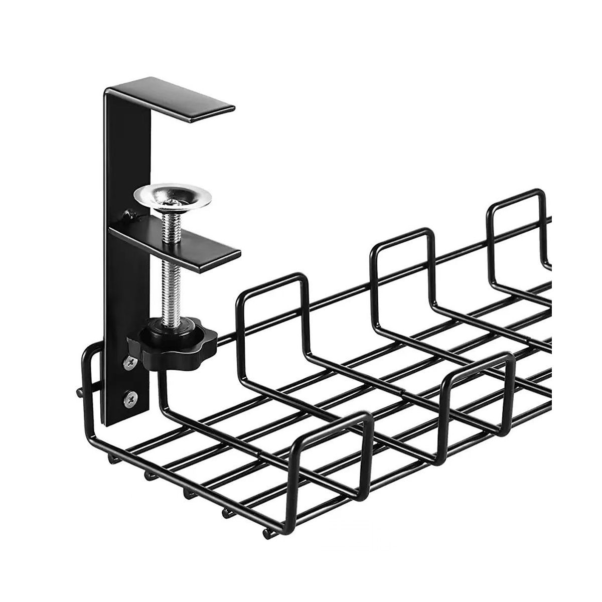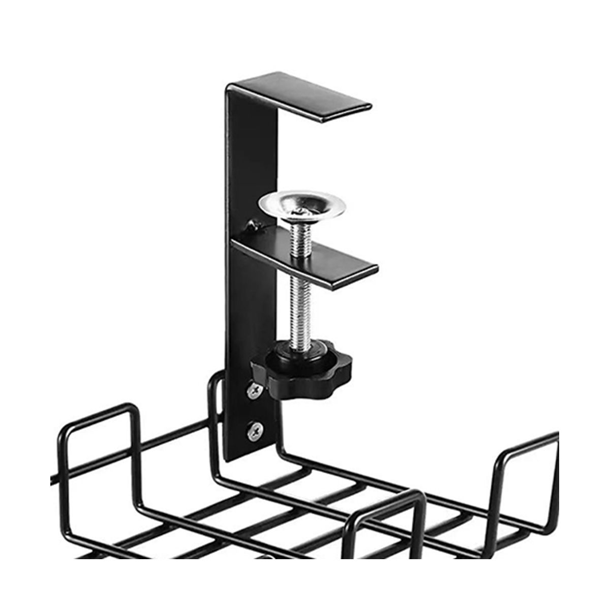 UNDER DESK SOLUTIONS: Unlike other cable racks that require screws to be screwed into the desk, the rack is designed to clip directly to the tabletop frame, you can simply turn the black handle by hand to clamp the cable rack tightly to the tabletop. So no drilling is required - Perfect for under table .(Please note: Please that this product is installed correctly on your desk)