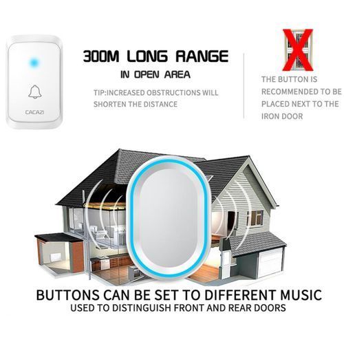 1X CACAZI Home Welcome Wireless Doorbell 58 Chimes 300M Remote Waterproof Cordless Door Ring Bell US EU UK Plug 23A12V Battery