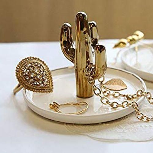 VARIOUS USES: Excellent for storing jewelry such as Earrings, Wedding Rings, Diamond Rings & Engagement Rings on the cactus's stems or dish. It can also serve as a storage tray/dish for change, house keys and other small items. A must have jewelry/ring organizer!