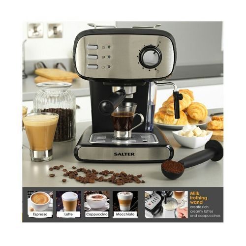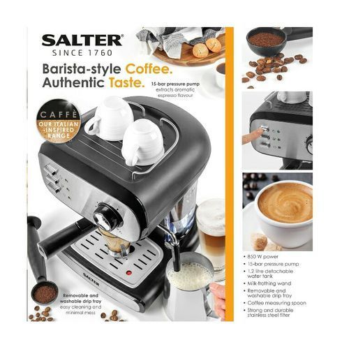 - Enjoy barista-style coffee in the comfort of your own home with the fabulous Salter Barista Pro Espresso Machine, perfect for any home.
