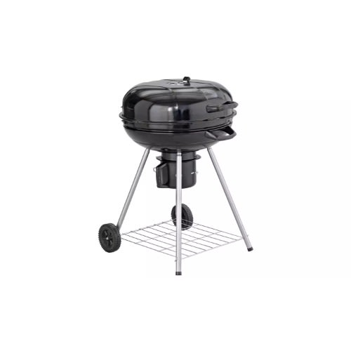 Black Portable Charcoal Grill Finished in a simple black color. This one-piece easy to set-up grill is powered by charcoal and can fold up for easy transportation. Made with durable metal, this portable grill comes with a carrying tote.
