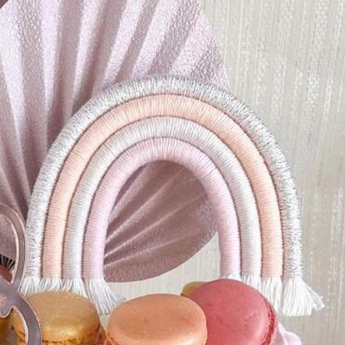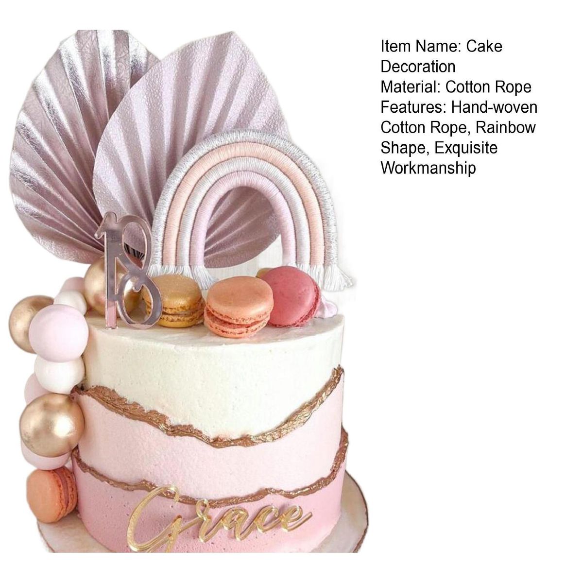 This cake insert sign has a lovely, pretty and creative hand-woven cotton rope design in the shape of a rainbow, and is highly decorative and eye-catching.
