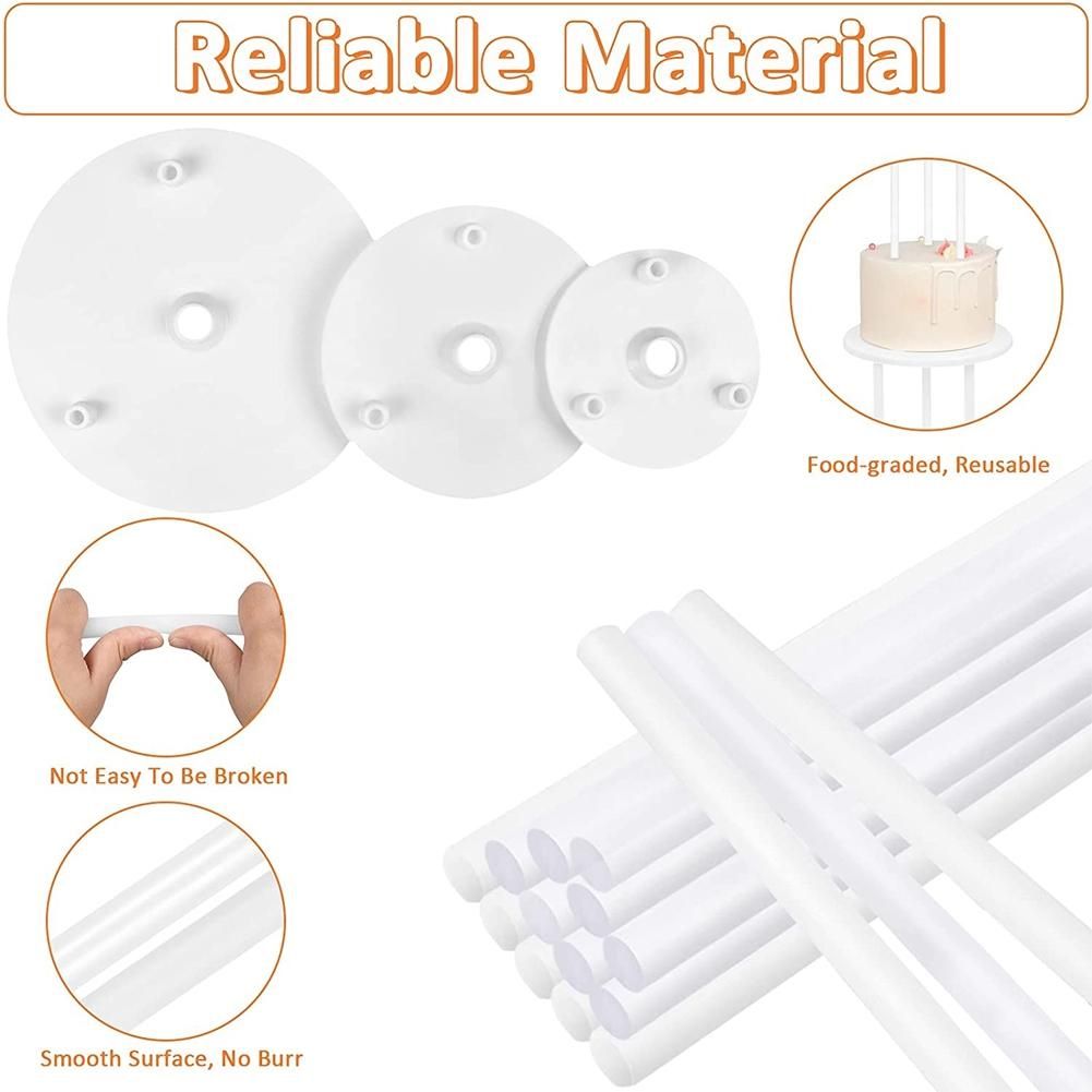 Detailed Information About The Product:Package contents: 18 plastic cake stands (9 thickened + 9 normal) and 3 cake plates round 9 cm, 12 cm, 16 cm, enough quantity to meet your daily needs for making cakes. perfect for placing multi-tier cakes and providing extra support.