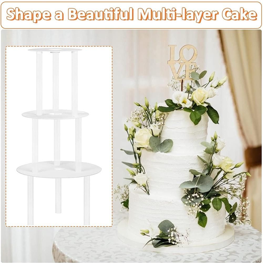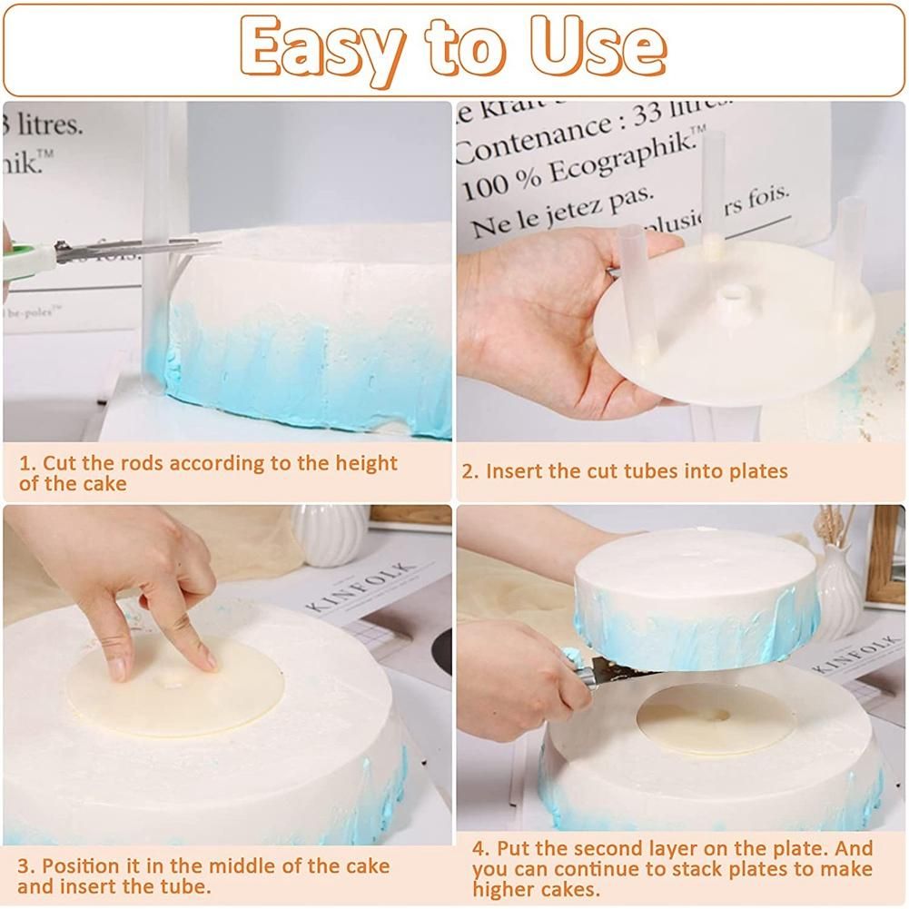 Cake baking assistant: the cake stands have a hollow structure, which makes them easy to insert into the cake and support the heavy weight of multi-tier cakes. The cake supports are designed to easily separate the cake levels from each other and create a floating illusion.