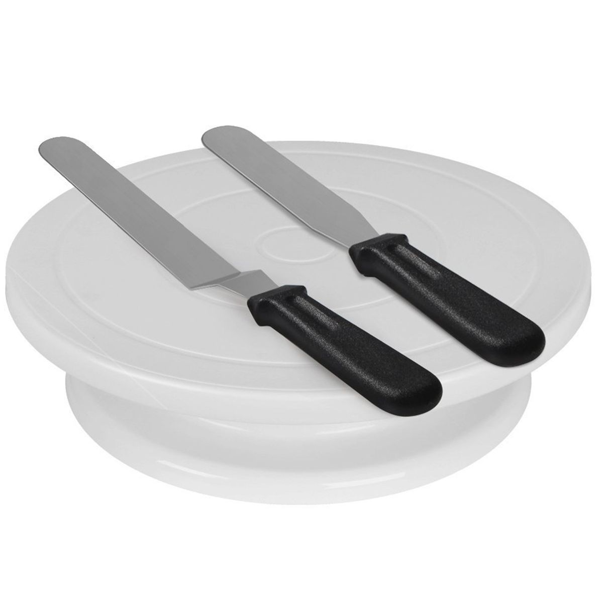 The package includes 1* cake turntable, 2* icing spatula, and 3 *icing smoother.