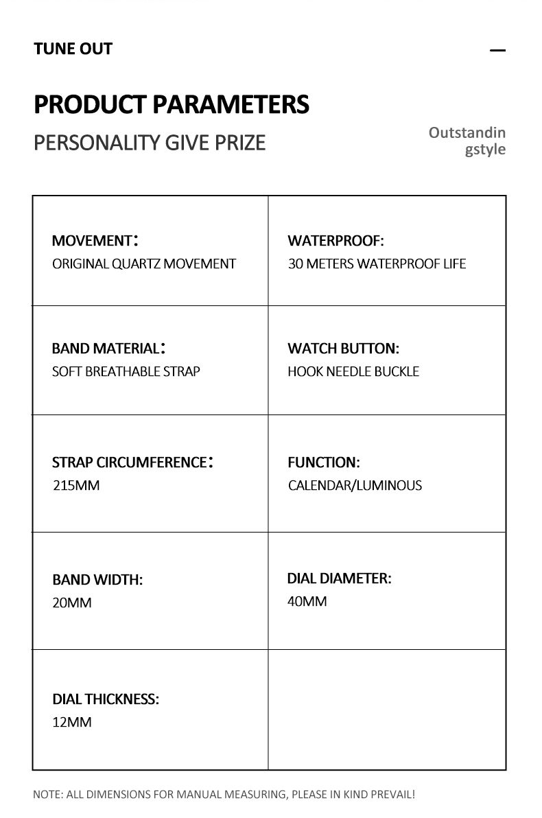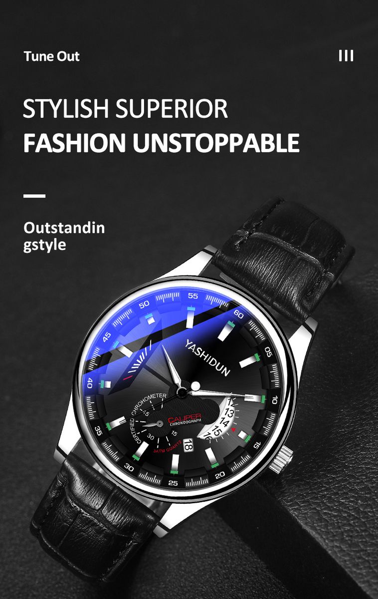 Model: Y308Display Type: PointerApplicable people: malestyle: fashionWaterproof: yesWaterproof performance: 30MMovement type: QuartzMovement origin: ChinaThickness: 10mmDial diameter: 40mmCrown Type: Screw CrownBottom Type: OrdinaryMirror material: Mineral tempered glass mirrorBuckle style: pin buckleBuckle material: stainless steelStrap material: PU leatherDial shape: roundCase Material: AlloyPlace of Origin (Domestic): Guangdong Province, ChinaPackaging specifications: single packaging