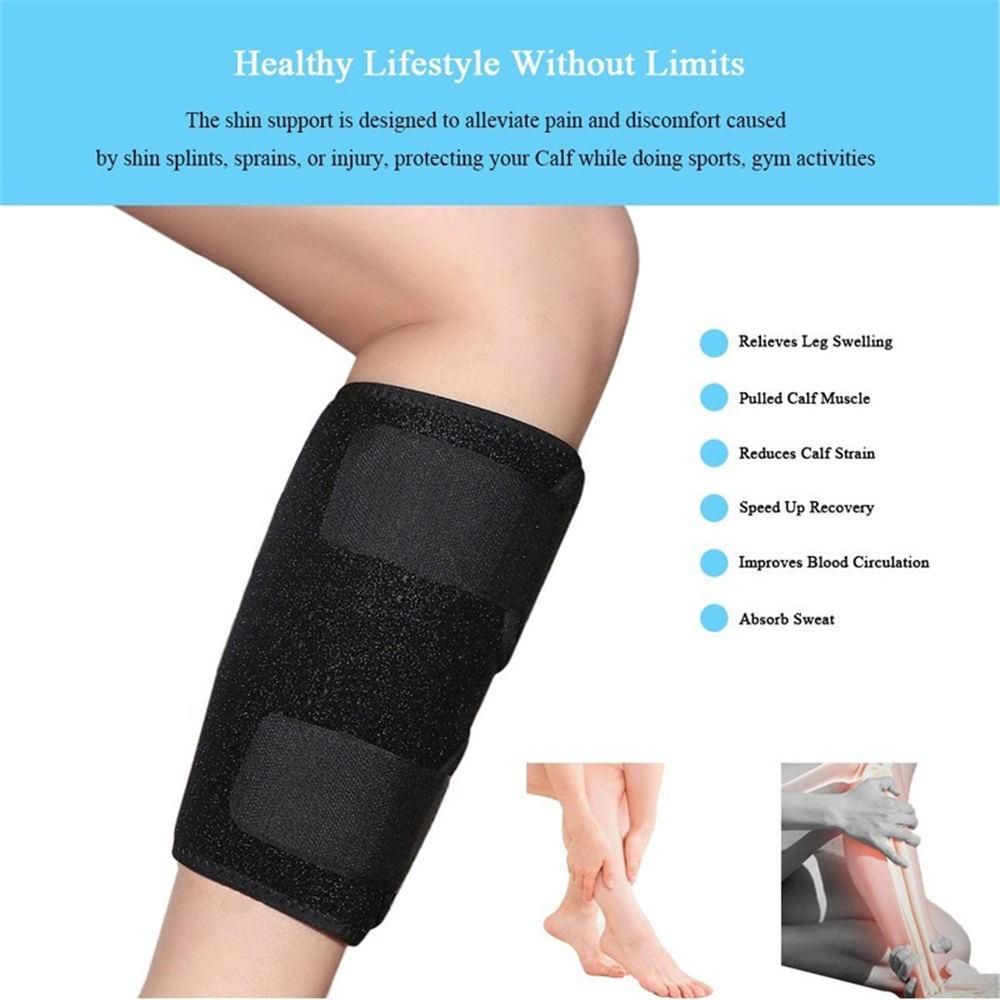 SOFT, COMFORTABLE, AND FULLY ADJUSTABLE: Premium neoprene of shin brace provides a snug fit. Three straps design gives the ability to control the amount of needed compression and keeps the calf muscle brace in place. It can be easily worn directly on the calf, over pants, or on top of shin splint sleeve